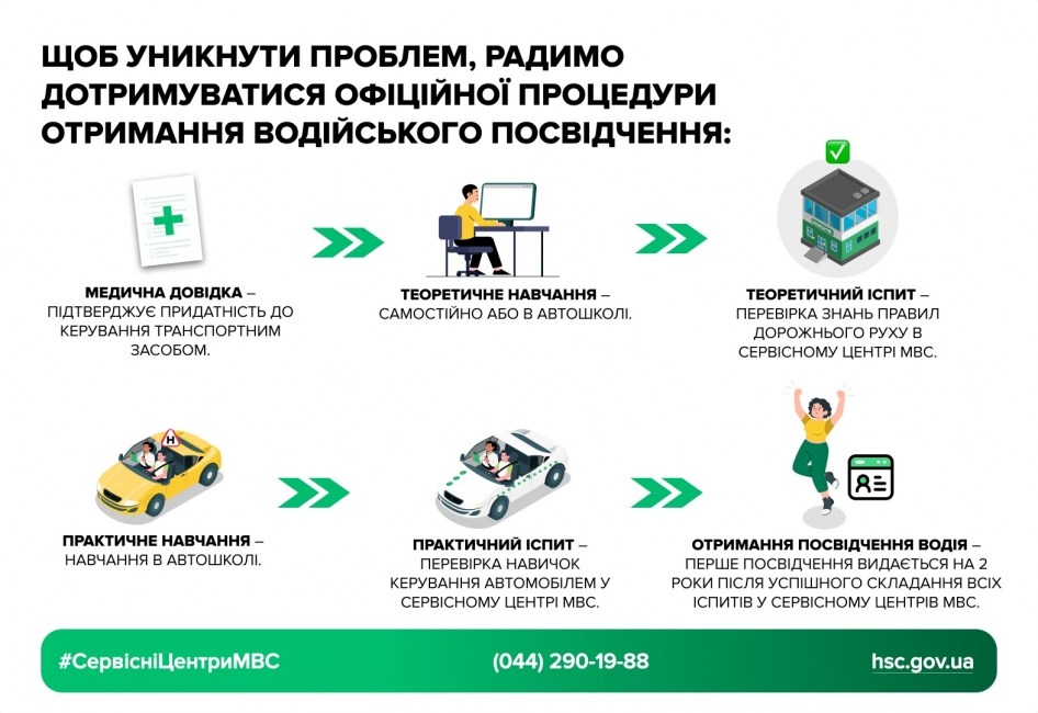 Щоб уникнути проблем, радимо дотримуватися офіційної процедури отримання водійського посвідчення: