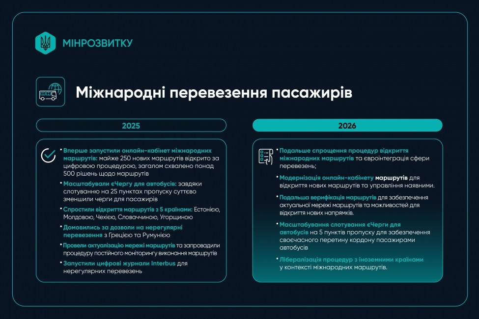 У 2025 році Мінрозвитку продовжило реалізацію системної реформи міжнародних автобусних перевезень.