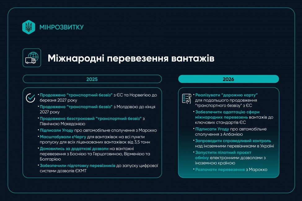 Упродовж року Мінрозвитку забезпечило стабільність міжнародних вантажних перевезень та збереження доступу українських перевізників до ключових ринків Європи.