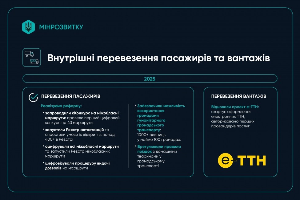 У 2025 році Мінрозвитку зосередилося на реформі внутрішніх автобусних перевезень та підтримці громад.