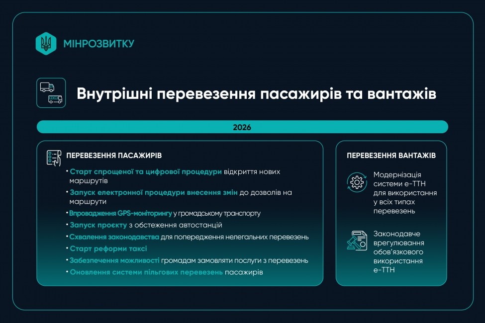 «Наш фокус - не точкові виправлення, а перебудова правил гри: цифрові сервіси замість паперових процедур, прозорі вимоги для бізнесу, безпека та прогнозованість для пасажирів і перевізників. У 2026 році ми масштабуватимемо ці рішення, синхронізуючи український транспорт із європейськими стандартами та роблячи систему стійкою навіть в умовах війни», - наголосив Сергій Деркач.
