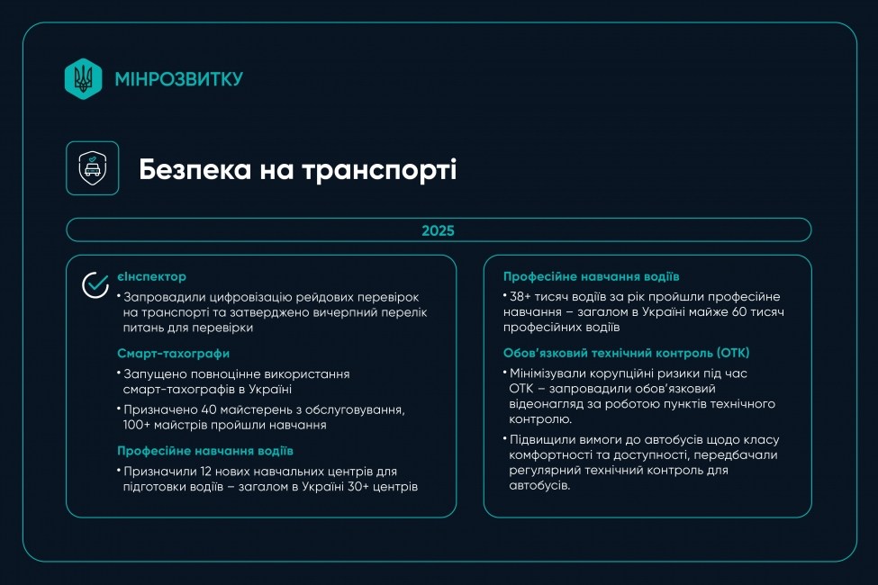 У 2025 році зроблено ключові кроки для підвищення безпеки та прозорості на транспорту, наприклад: