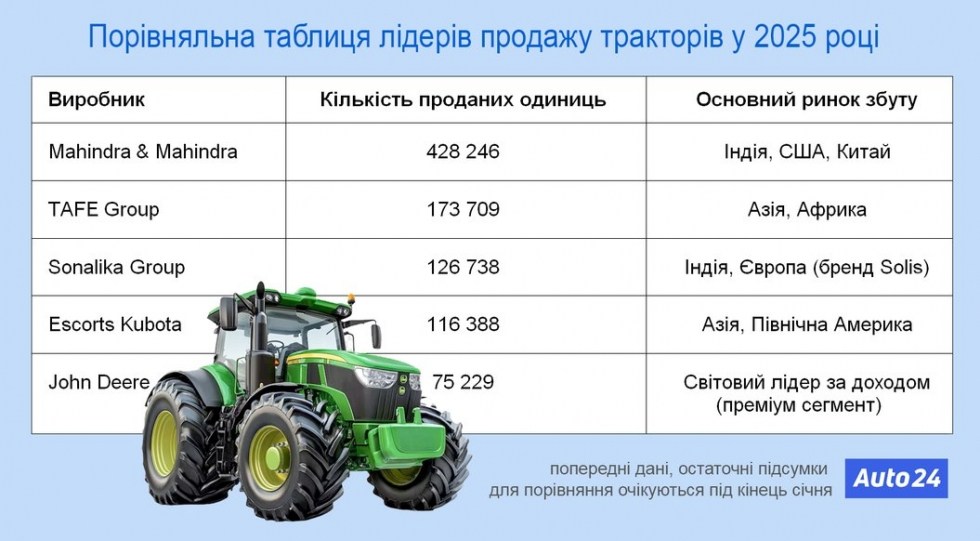 За попередніми підрахунками лідером глобального ринку за кількістю проданих у 2025 році тракторів стала індійська компанія Mahindra & Mahindra, але є один нюанс…