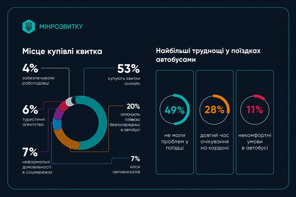 Щонайменше 11% пасажирів називають основним викликом в поїздці - некомфортні умови в автобусі. Також серед проблем під час поїздки - непередбачені пересадки, зміна маршруту, низька кваліфікація водіїв або ж технічна несправність автобусів.